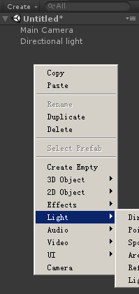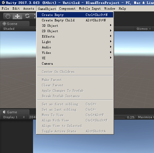 GameObject (游戏对象菜单)